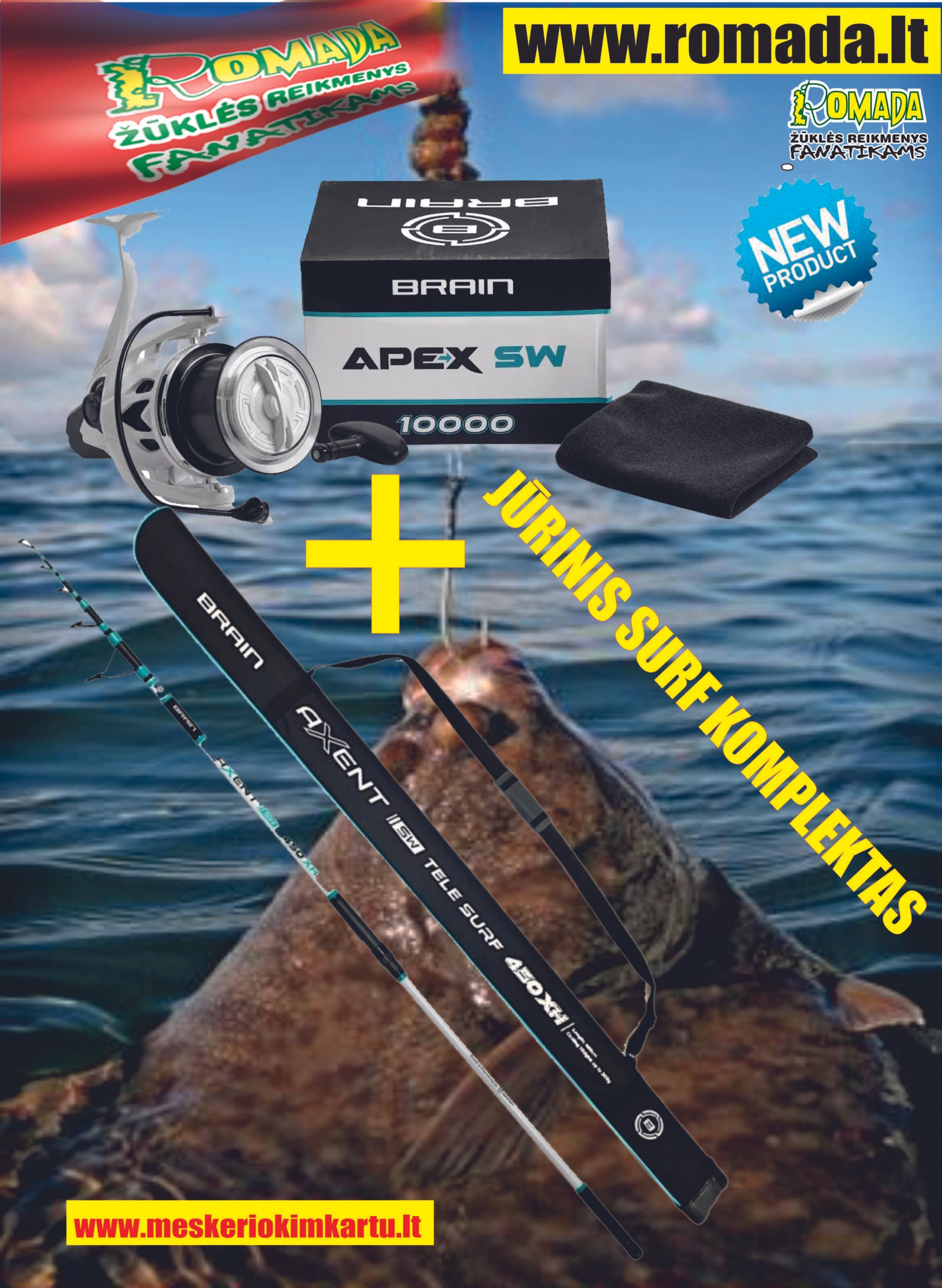 „Brain teleskopinė Apex SW Surf“ meškerė skirta žvejybai nuo kranto sūriame vandenyje. Gamintojas daugiausia dėmesio skyrė ilgų nuotolių metimams – galimybei paleisti sunkius meškerykočius toli į jūrą. Skirtingai nuo tradicinių Surf meškerių, „Apex SW“ blankas yra itin plonas, todėl lengviau atlikti itin ilgus metimus su sunkiais masalais. Šios metimo savybės pasiekiamos dėl tikslaus storio ir kūgio formos anglies pluošto blanko.