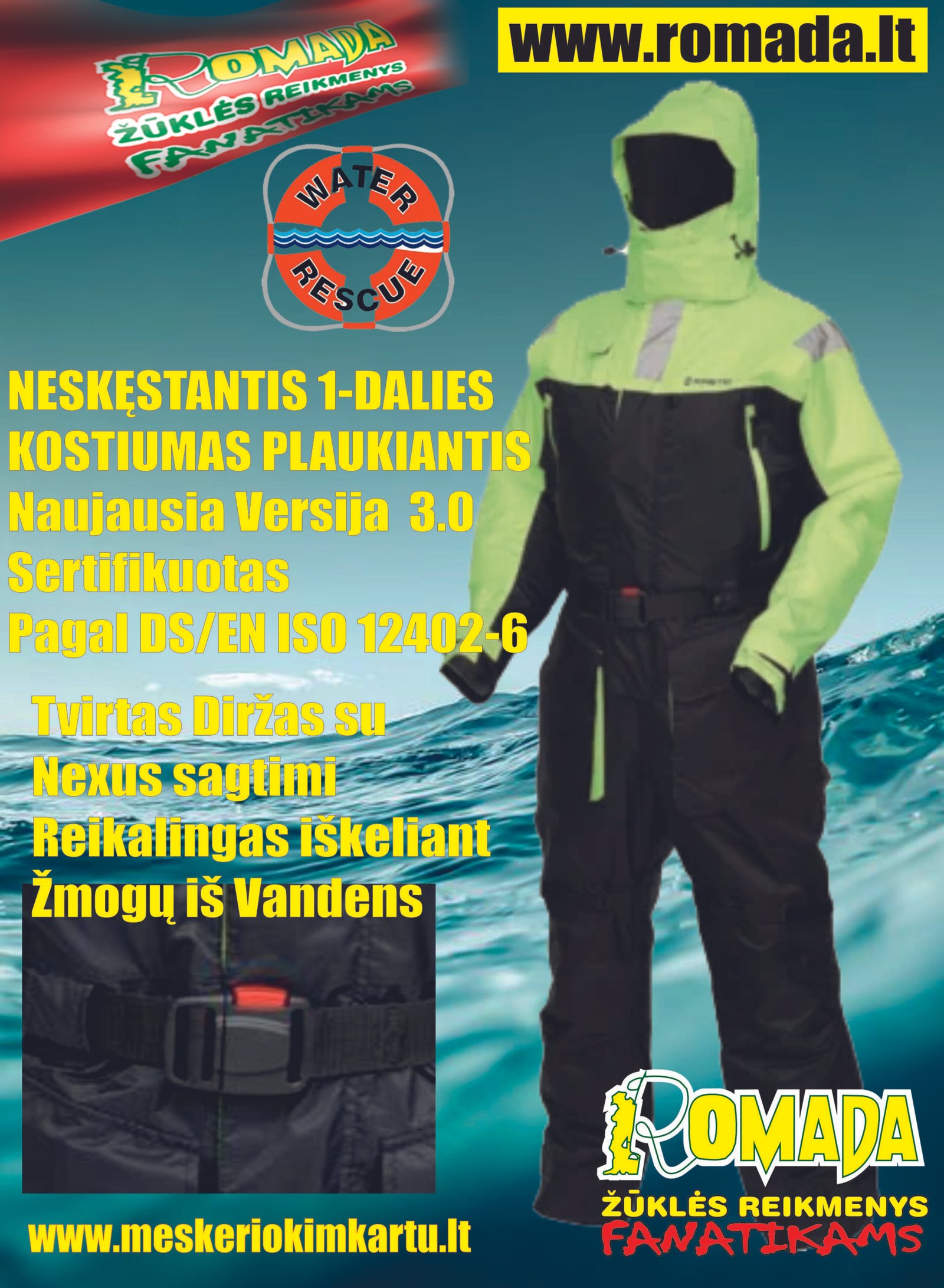 Saugumas ir saugumas! Asmeninis saugumas yra svarbiausias dalykas, kuriuo dizaineriai vadovavosi kuriant ir kuriant šį kostiumą. Pristatome Jums naują ir patobulintą 1 dalies plaukiojančio kostiumo „Kinetic Versija 3“, sertifikuotą daugybe saugos sertifikatų, atitinkančią net aukščiausius saugos standartus. Jį sudaro patrauklaus dizaino kombinezonas ir striukė. Saugumas yra svarbiausias ir esminis dalykas. Susilietus su vandeniu, jis leidžia išlikti vandens paviršiuje. Jame yra suvirinimo siūlės ir reguliuojamas vidinis diržas, kuris padeda padidinti jūsų plūdrumą vandenyje. Jame taip pat yra signalų juostos, kurios prireikus atlieka svarbų vaidmenį.