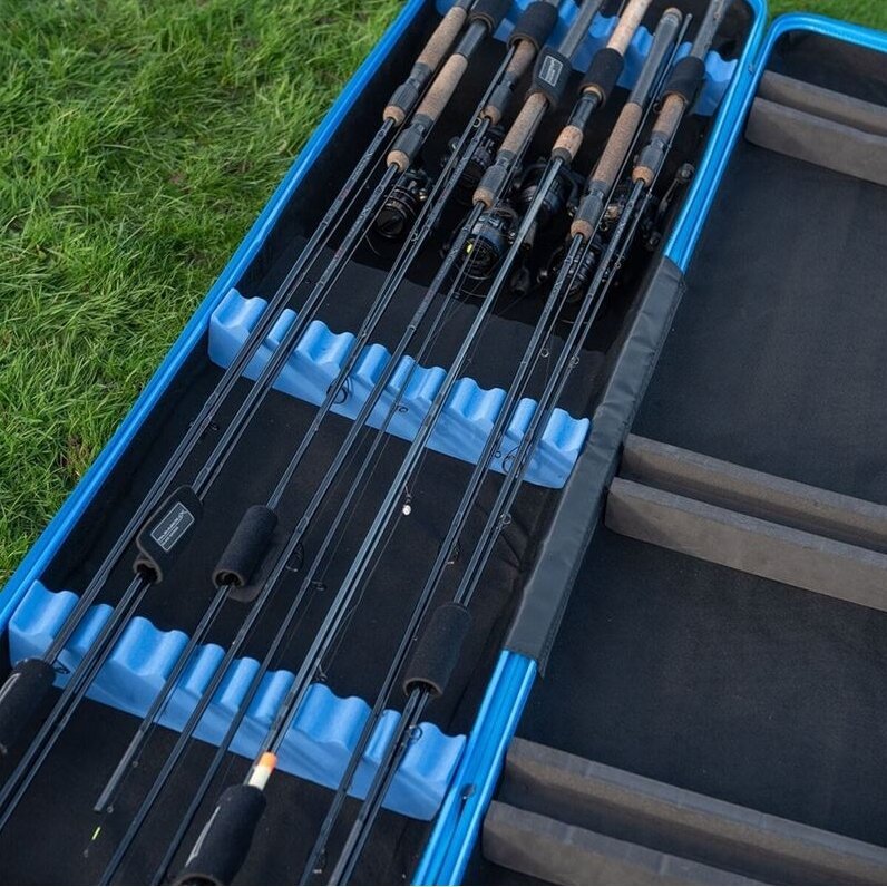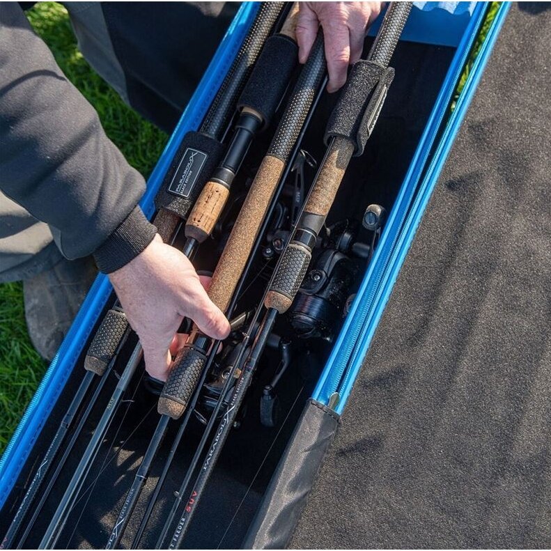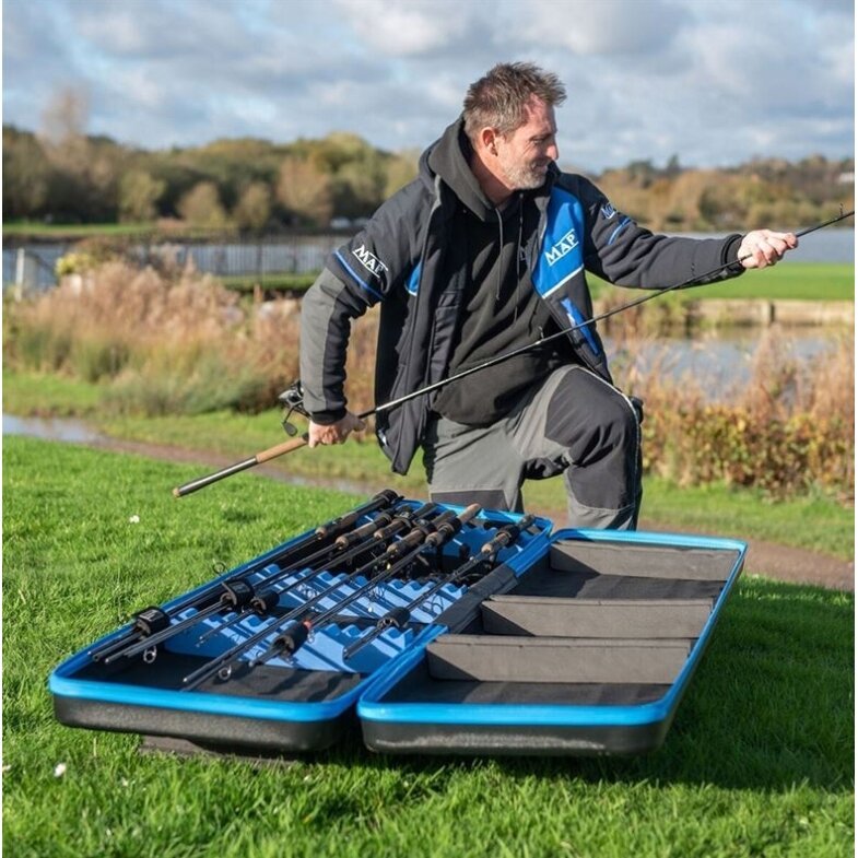MAP meškerės apsauginis dėklas siūlo jums geriausią sprendimą, kaip apsaugoti meškeres saugojimo ir transportavimo metu. Aptakus, lengvas dizainas leidžia lengvai nešiotis ir valdyti. Sukurta taip, kad tilptų 2 iki 12 pėdų ilgio spiningai meškerės su reguliuojamais dirželiais, kurie juos saugiai laiko. MAP meškerių apsaugos dėklo išorė pagaminta iš tvirto, vandeniui atsparaus ABS, kuris puikiai apsaugo nuo drėgmės ir elementų. Galimi du dydžių variantai: standartinis, kuriame telpa iki 5 pagamintų meškerių, ir platesnė X-Large versija, kuriai, priklausomai nuo ilgio ir konfigūracijos, reikės iki aštuonių meškerių.