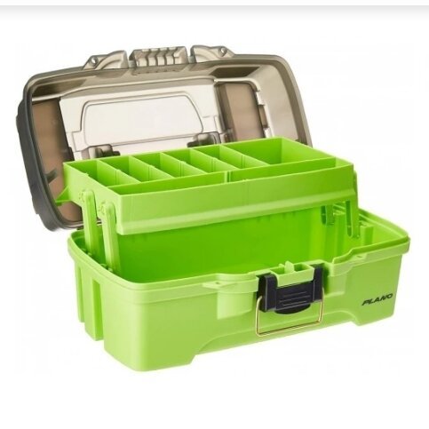 Plano klasikinė dėklo reikmenų dėžutė. Sužinosite, kad tai Plano, kai išgirsite tvirtą žalvario skląsčio spragtelėjimą. Populiarioje vieno aukšto reikmenų dėžutėje yra vienas konsolinis padėklas su reguliuojamais skyreliais ir daug masinių daiktų saugyklos apačioje. Dangtelyje yra du viršutiniai skyriai, kuriuose yra papildomos vietos.