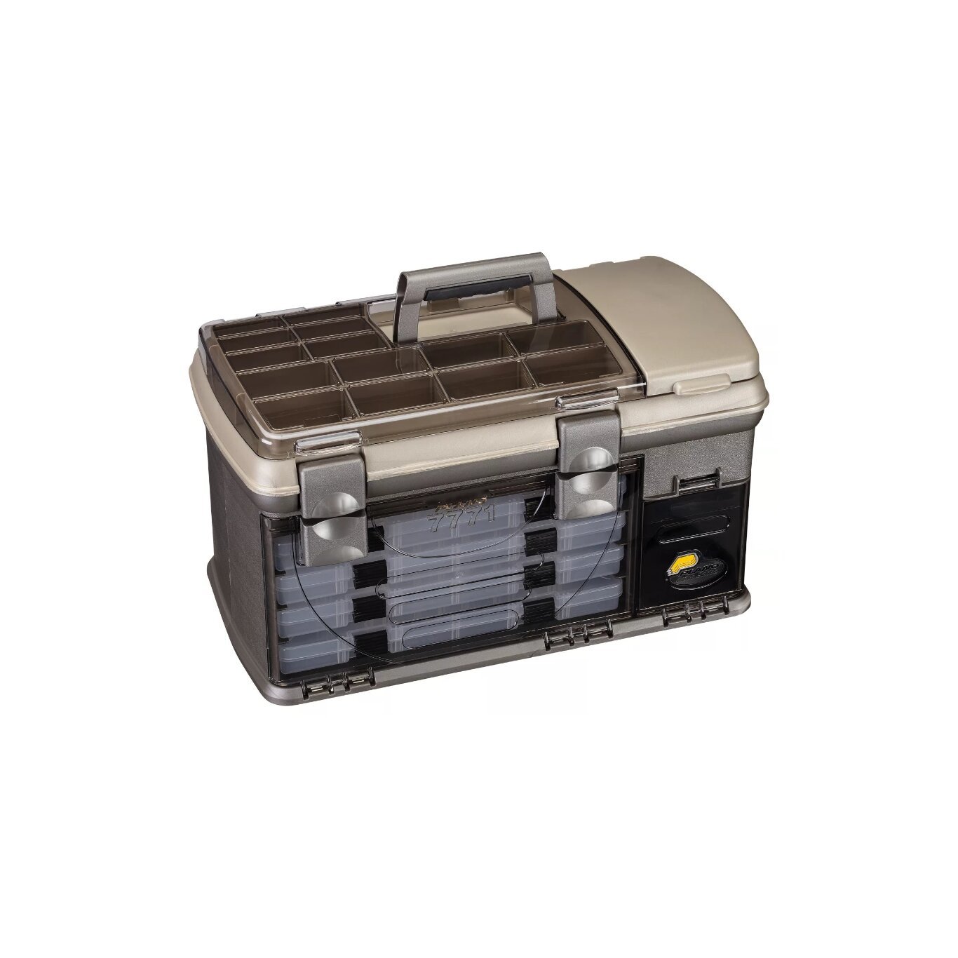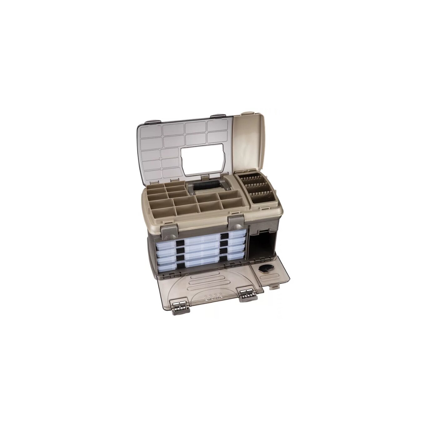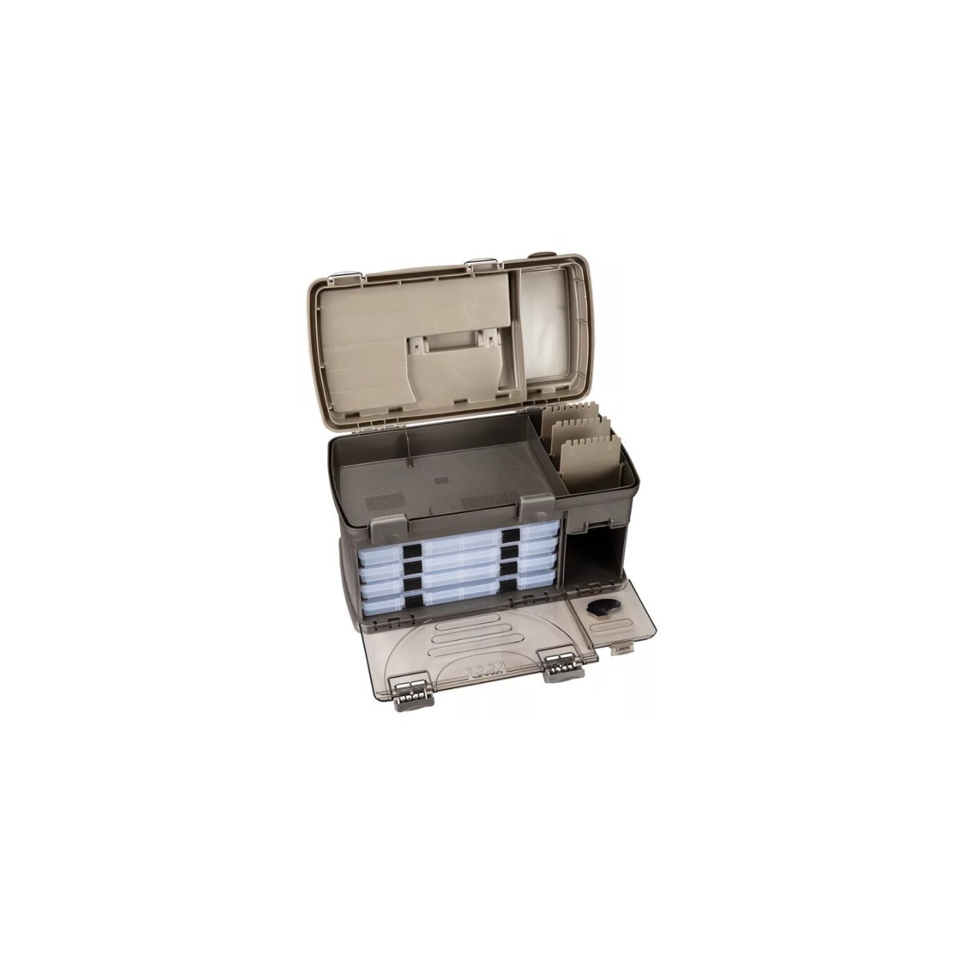 Šioje žvejybos reikmenų dėžėje yra 3 nuimamos jauko lentynos su atskira prieiga, taip pat erdvi daiktų saugykla ir 4 išimamos StowAway dėžės su ProLatch užsegimais. Visada galite stebėti, kas yra viršutiniame daiktadėžės viduje, nes prieiga prie viršaus su skaidriu „DuraView“ dangčiu.
