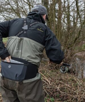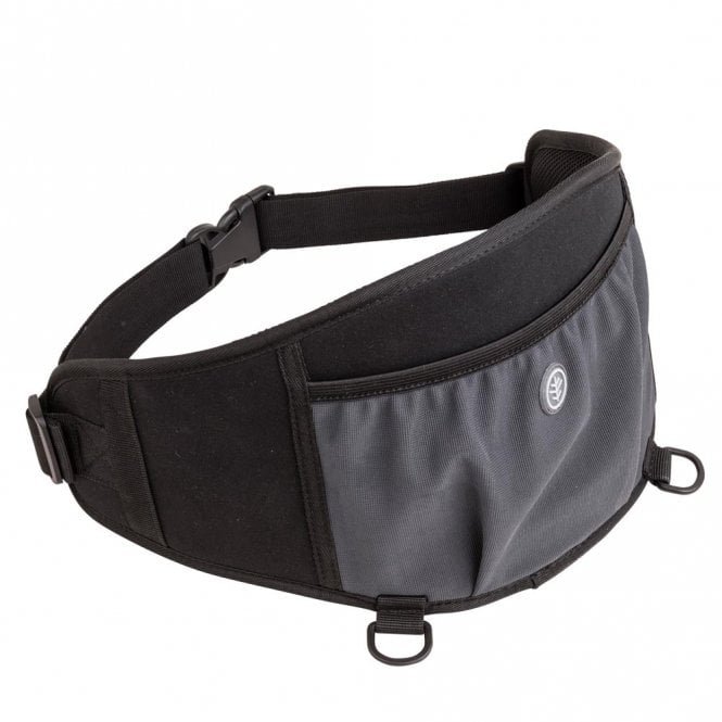 Didelė elastinga užpakalinė kišenė, keli „D“ žiedai ir pilnai reguliuojama lengvai užsegama sagtis.