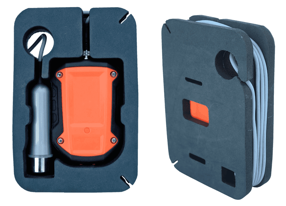 Universalus dėklas yra skirtas laikyti ir gabenti „PRAKTIK 5-8 VERSIJAI“ echolotus žvejybos metu.Echoloto sandėliavimas ir transportavimasEcholotą rekomenduojama laikyti ir gabenti , ekranu žemyn.Echoloto pakavimo ir tvarka:Padėkite echoloto įrenginį kabelio įvore į viršų.Apvyniokite kabelį aplink „Dėžutę“ ritę pagal laikrodžio rodyklę, geriausia, kad jis nepersidengtų.Įdėkite jutiklį iš apačios į angą (1) ir padėkite jutiklį į „Dėžutę“ šalia bloko. Echoloto pašalinimas iš „Dėžutės“ atliekamas atvirkštine tvarka.