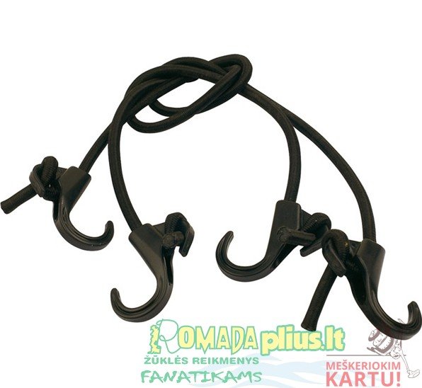 Elastinės gumos komplektas su kabliais daiktams tvirtinti.