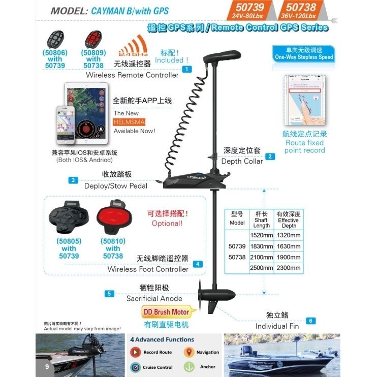 „ Cayman -B GPS t“ riedėjimo variklis yra įrodytas kiekvieno žvejo pagalbininkas, kuriam reikia universalumo, valdant variklį belaidžiu rankiniu nuotolinio valdymo pultu.