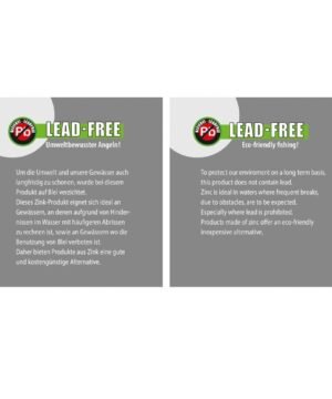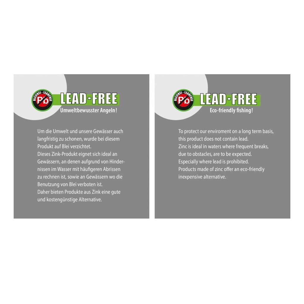 Leadfree Jig-head LEADFREE – aplinkai nekenksmingas meškeriojimas! Kad mūsų vandenys ir aplinka būtų švarūs, šios bešvinės antgalių galvutės buvo sukurtos. Iš cinko pagamintos galvakablių galvutės idealiai tinka naudoti vandenyse, kur neišvengiama kliūčių, taip pat vandens telkiniuose, kuriuose švinas draudžiamas. Dėl to šis cinko gaminys yra gera ekonomiška alternatyva. Supakuota po 5vnt.