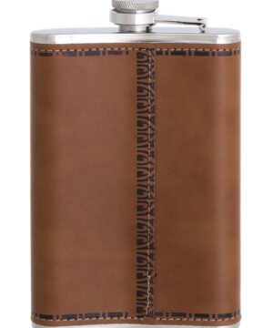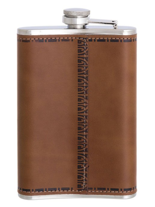 Gertuvė 270 ml. Pagaminta iš nerūdijančio plieno ir dekoruota dirbtine oda. Ant jos yra piešinys.