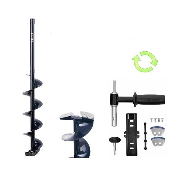 Dešinysis sukimasis, gręžimo skersmuo – 130 mm, gręžimo gylis – 1000 mm, sraigto spiralės ilgis – 600 mm, bendras ilgis – 1034 mm, sraigto prijungimo angos skersmuo – 20,2 mm, adapterio veleno skersmuo – 20 mm. Svoris 2,9kg. Komplektas: Sraigtas, peiliai , M6x12 varžtas – 4 vnt., apsauginis dėklas peiliams, specialus M6 sparnuotas varžtas, adapteris. Komplektą sudaro dešinės pusės sukimosi sraigtas, adapteris, skirtas patogiam ledo gręžimui su akumuliatoriniu atsuktuvu. Patvari polimerinė danga atlaiko ekstremalius temperatūros svyravimus ir stiprų mechaninį įtempimą. Pagamintas iš aukštos kokybės plieno su ypatingai aštriais peiliukais, kuriuos galima paprastai pasigaląsti.