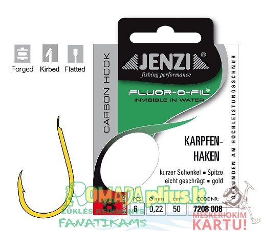 Kabliukai su pavadėliu Fluor Carbon Carp nr.8