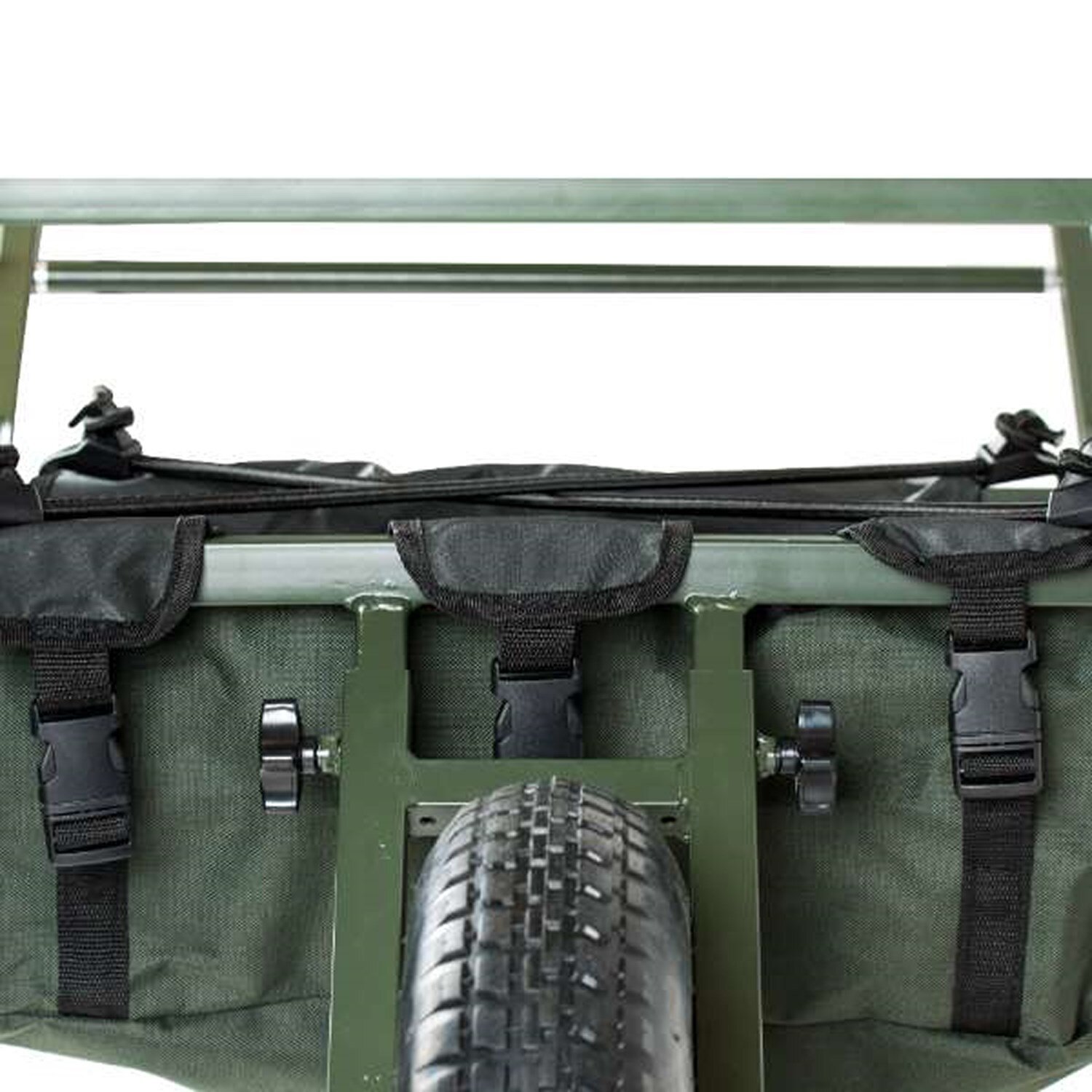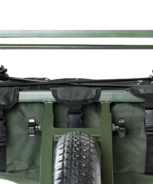 Šis transportavimo vežimėlis yra kompaktiškas, tvirtas ir patogus. Tvirtas ir itin patvarus rėmas. Suteikia pakankamai vietos ir patogumo vienu ypu nunešti visus savo įrankius į žvejybos vietą ar stovyklavietę. Transportavimo vežimėlis turi tvirtą ir lengvą rėmą, taip pat yra sulankstomas. Tai leidžia lengvai sutalpinti jį į automobilį. Karutis turi didelį ratą, kad būtų lengva transportuoti, ir 2 patogias kojeles su purvo pėdomis. Šiame vežimėlyje taip pat yra krepšys visiems jūsų priedams. Kompaktiškas ir tvirtas. Sulankstomas. Įrengtas didelis ratas, kad būtų lengva transportuoti. 2 kojos su purvo pėdomis. Yra krepšys aksesuarams. Transportavimo matmenys (cm) 76 x 55 x 23. Max apkrova 150kg.