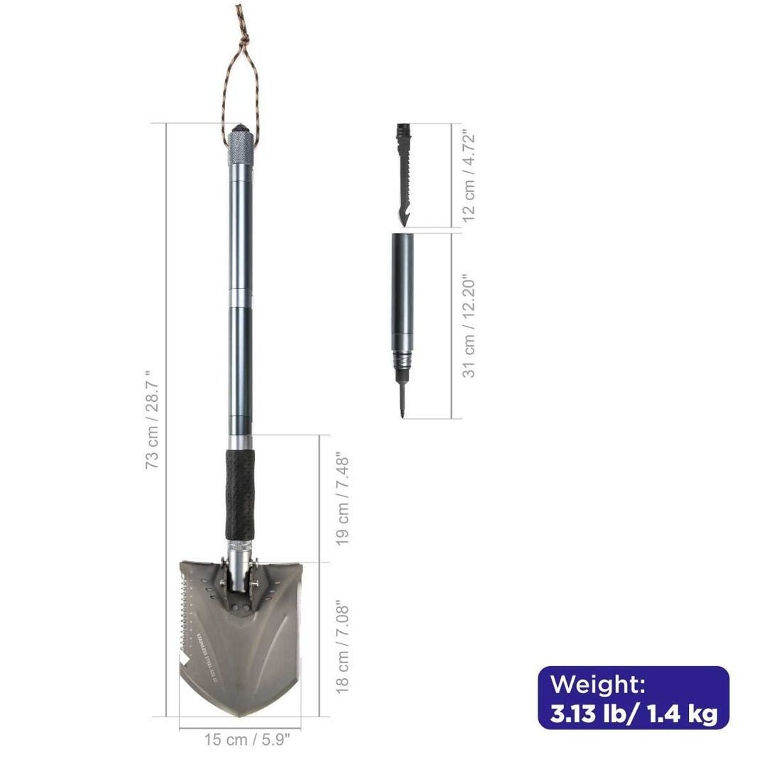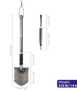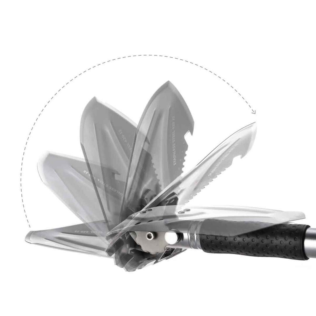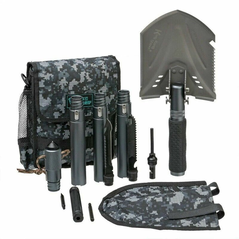 Sulankstomas daugiafunkcis kastuvas yra nepamainomas įrankis medžioklėje, žvejyboje, važinėjant keturračiais ir ekstremaliomis sąlygomis. Kastuvas patogiai sujungia reikiamą funkcionalumą: pjūklą, peilį, ugnies skeltuvą, atsuktuvą ir kt. Daugiafunkcis kastuvas kaime ir jūsų automobilyje visada padės ir neužims daug vietos. Lengvas, kompaktiškas, patvarus kastuvas lauke daug kartų patogesnis nei tradicinis. Sulankstytas kastuvas užima minimaliai vietos – jį patogu įsidėti į dėklą. Galite jį surinkti per kelias sekundes. Keičiamus elementus lengva keisti ir tvirtai pritvirtinti prie rankenos. Krepšys-dėklas su dviem skyriais ir didele kišene su užtrauktuku.