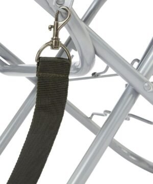 Lengva sulankstoma kėdė su tvirta drobės sėdyne ir atlošu, sumaniai su reguliuojamu strypo atrama.
