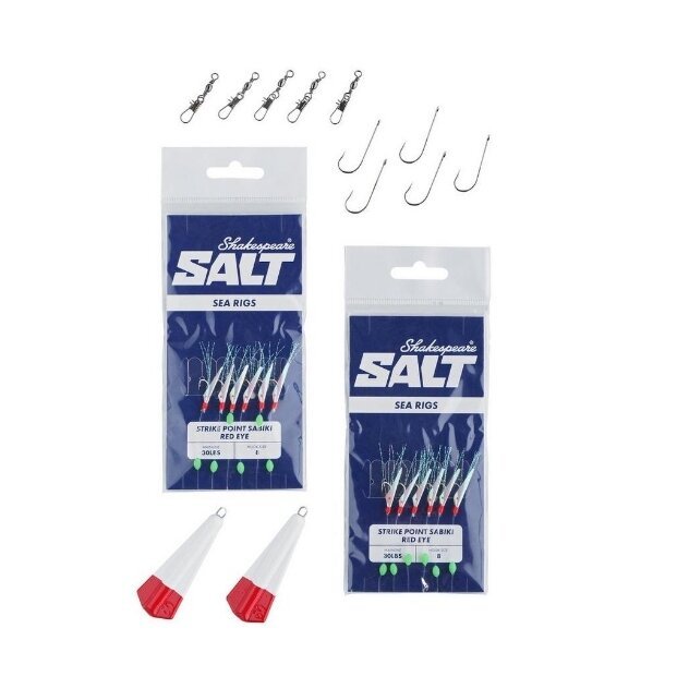 „SALT Herring“ derinys yra žvejybai paruoštas komplektas žvejams. Tvirtas stiklo pluošto teleskopinis strypas yra su nerūdijančio plieno titano oksido žiedais ir yra trumpo transportavimo ilgio. Tvirta grafito ritė yra pilnai suvyniota su geros kokybės mono valu. Kad šis derinys būtų užbaigtas, įtraukėme pilną įrankių dėžę su visais galutiniais reikmenimis, kurių jums prireiks: 2 svareliai, 2 sistemos, 5 suktukai su spynelem ir 5 papildomi kabliukai!