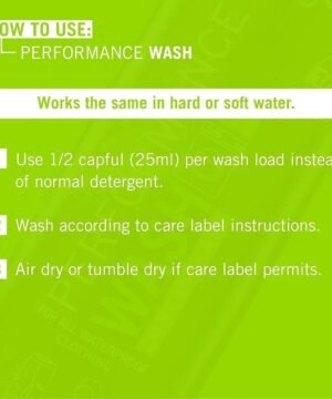 „Performance Wash“ yra galingas, tačiau švelnus „Bluesign®“ patvirtintas valiklis be PFC, skirtas visiems lauko ir techniniams drabužiams valyti. Jis taip pat yra mūsų naujame 100 % perdirbto po vartojimo (PCR) buteliuke, o tai reiškia, kad padedate apsaugoti pasaulį, kurį visi mėgstame tyrinėti. Su mūsų koncentruota formule tereikia pusės dangtelio, nesvarbu, ar tai minkštas, ar kietas vanduo, kad jūsų įranga atrodytų kaip nauja.