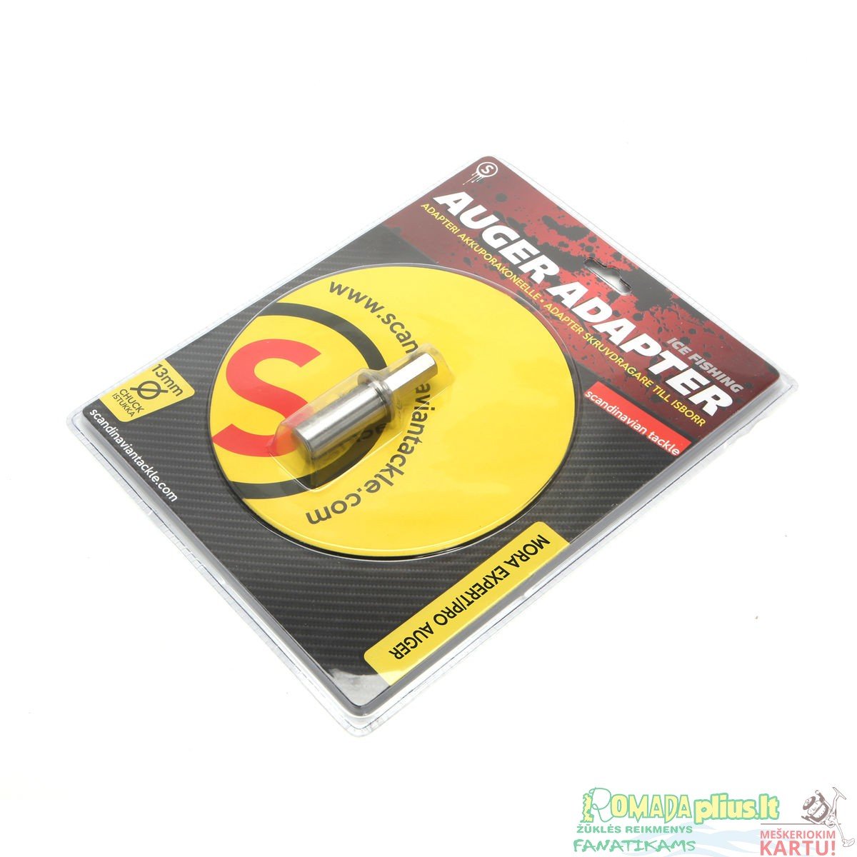 Ledo grąžto adaptorius į drelę 130mm Rapala, Mora ir kitiemsnnHandy adapter to use your cordless drill as ice auger. Use adapter join auger and cordless drill together and you are ready to go. Adapter comes with plastic safety ring whichrestrain auger drop in to auger hole. Material is 304 Stainless Steel.nnNOTE: Cordless drill has to have 13mm chuck for these adapters. We strongly recommend use at least 18V drill with 4.0mAh battery. More bigger battery more holes per day you make.