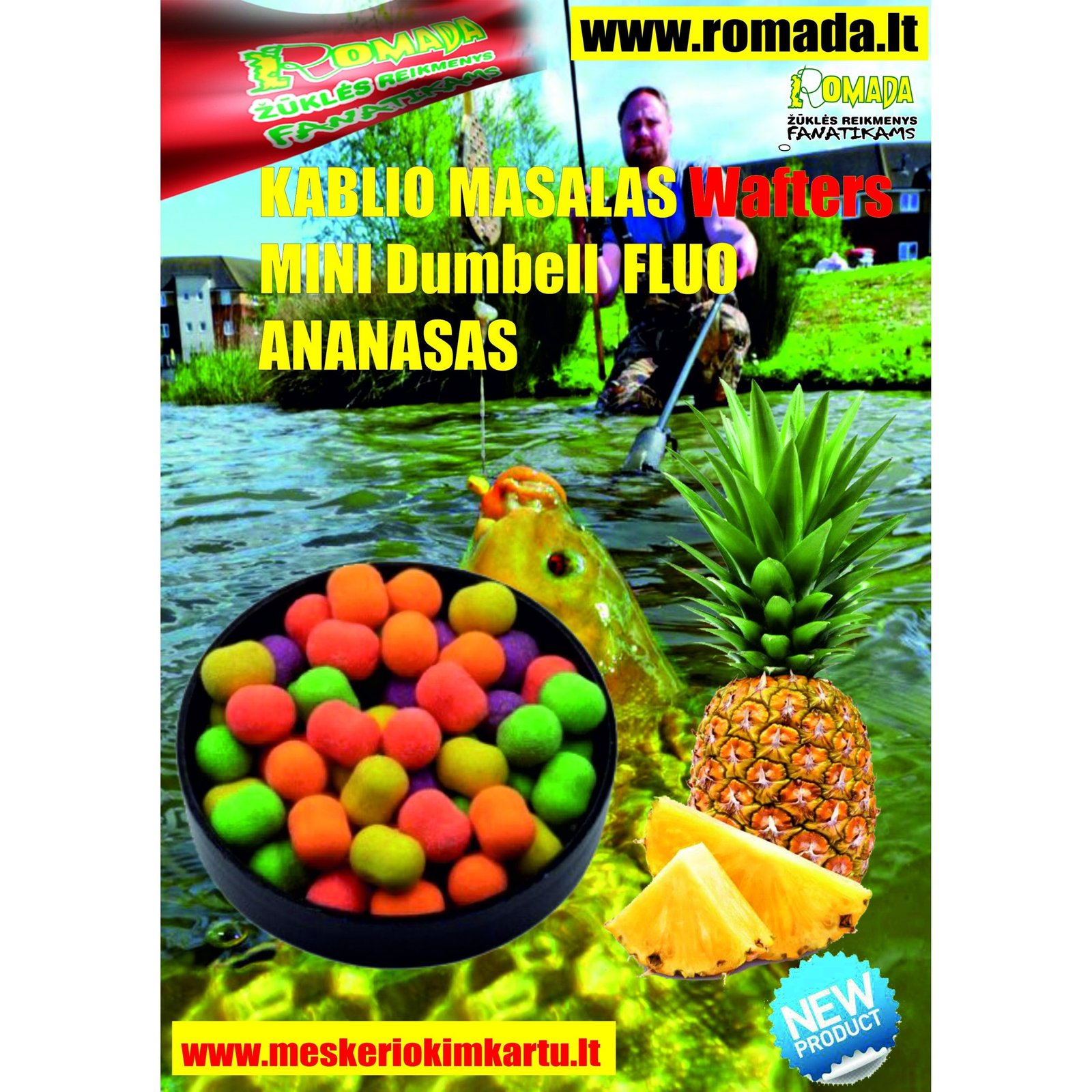 Masalas dažniausiai naudojamas Method Feeder MINI Dumbell Wafters FLUO Multicolor žūklėje arba Karpių, Karšių, Lynų, Karosų, Ūsorių, Stambių kuojų žūklei . Masalas yra neutraliai plūdrus, išsiskiria savo aromatu bei spalva, yra greitai aptinkamas žuvų. Wafter'iai yra rožinės spalvos, skleidžia aromatą. Puikiai vilioja karpius, karšius, karosus, lynus ir kitas žuvis.