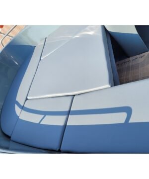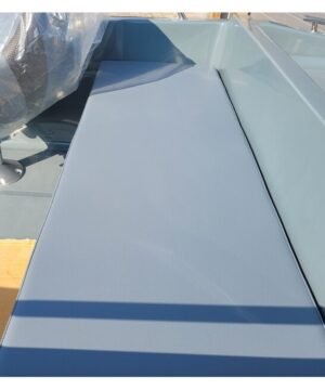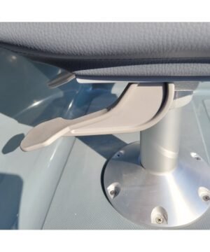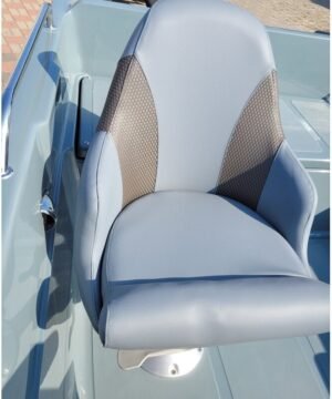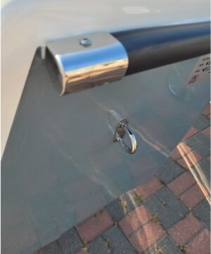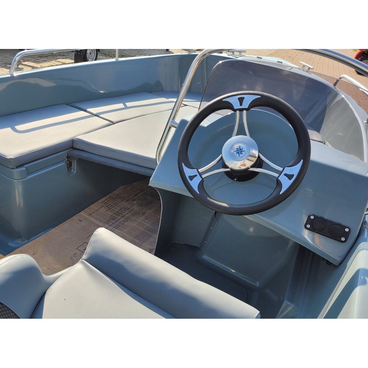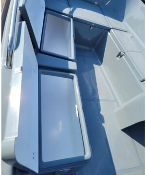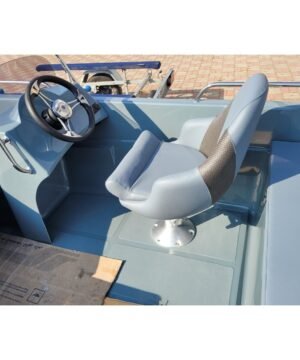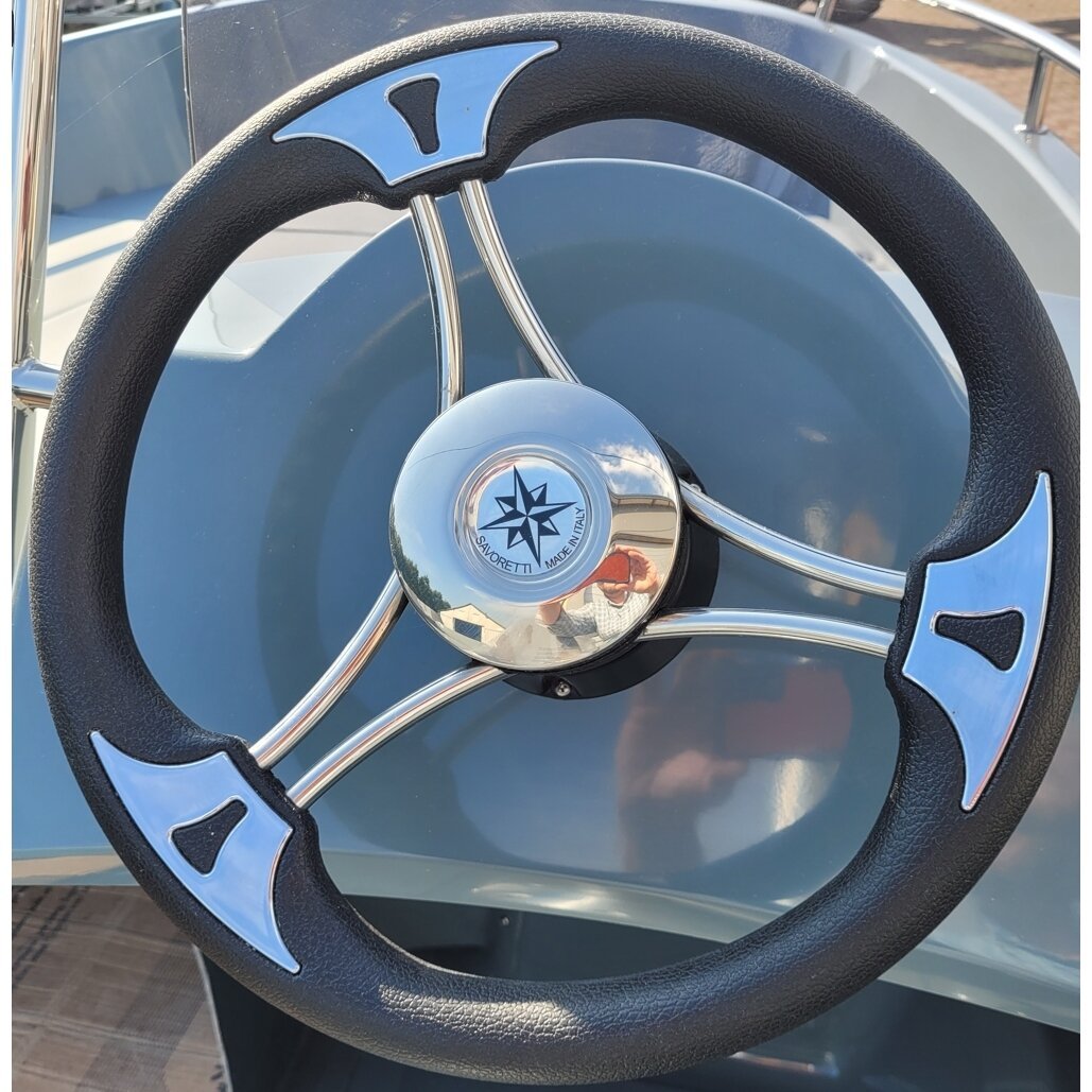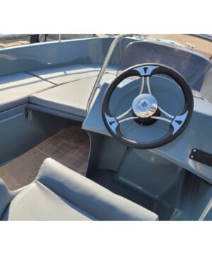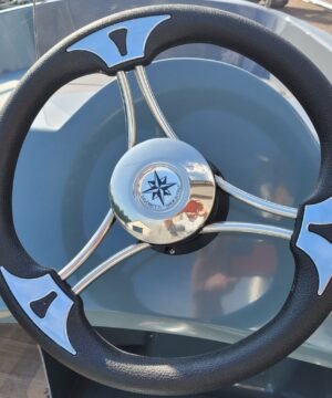– konsolė su vairo sistema, INOX pilkos spalvos vairas, stiklas ir INOX turėklai,