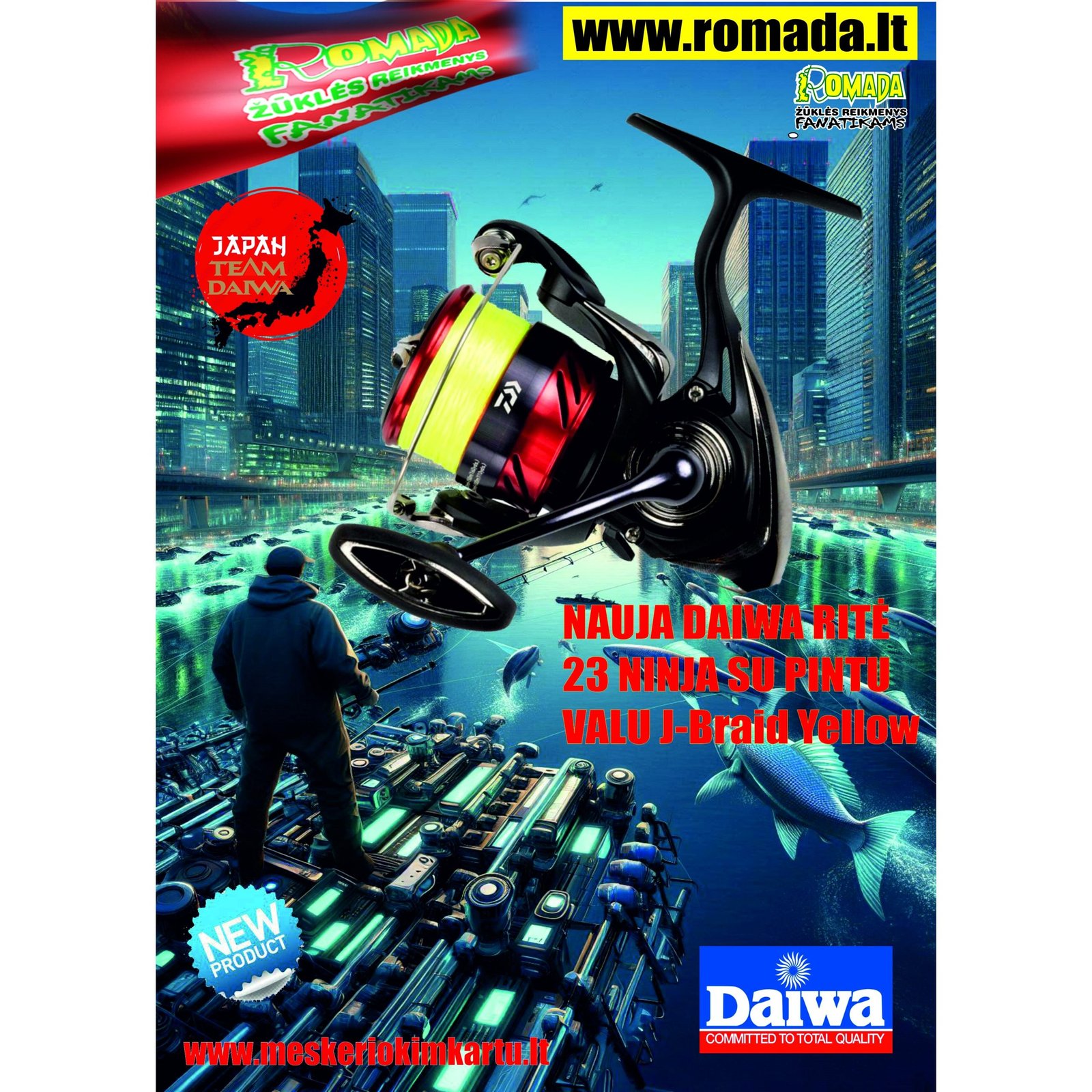 Nauja 2025 metų Daiwa Ritė 23 „Ninja“ iš anksto SUVYNIOTAS pintas valas „J-Braid X4 Yellow“ Japan technologija , DAIWA sujungia pažangų japonišką dizainą su paruoštu naudoti patogumui.
