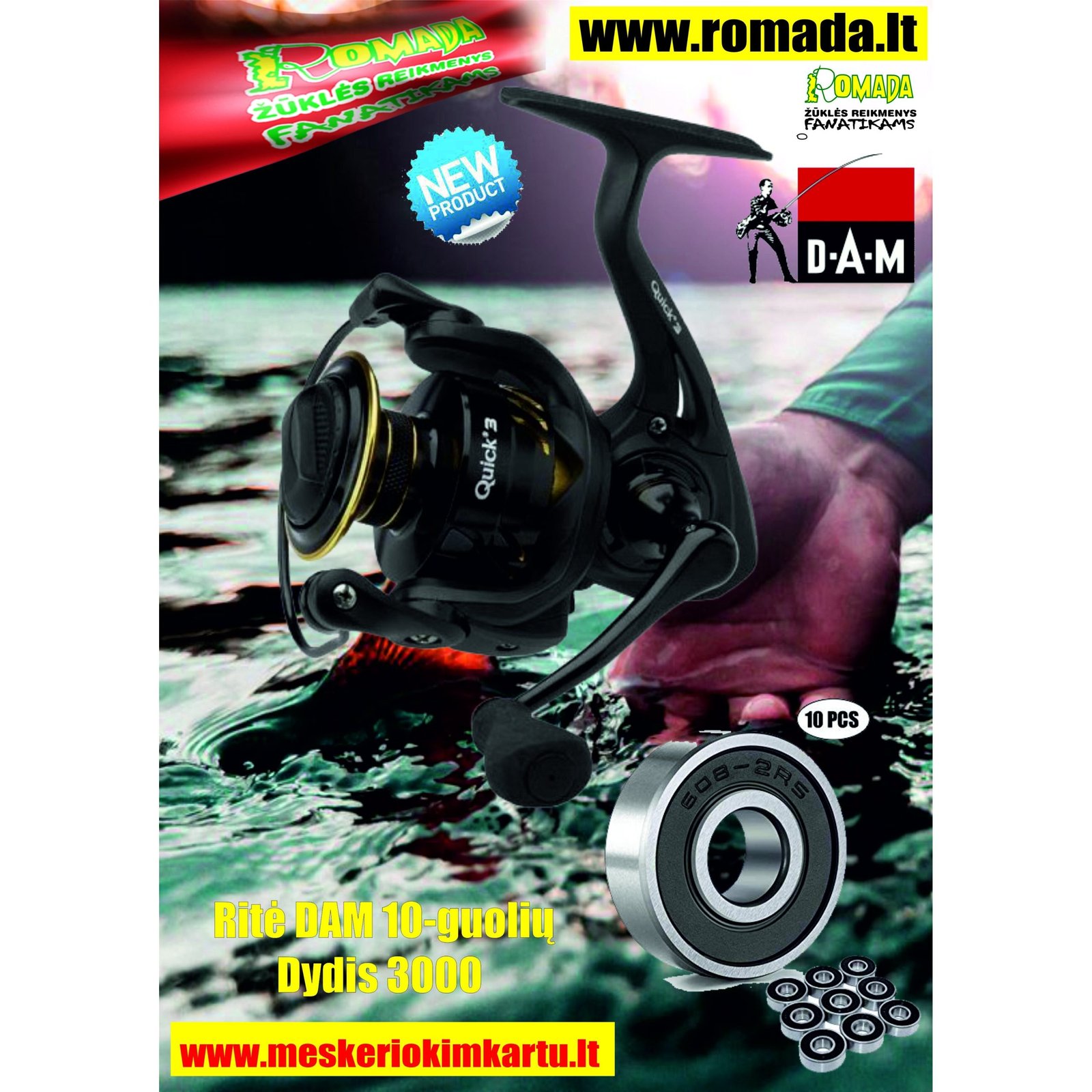 Nauja Ritė DAM 10-guolių Quick 3000 su priekinių stabdžiu yra dar vienas visos Quick® vienas iš tobuliausių ričių savo serijoje. Pagaminta Vokietijoje, naudojant tik geriausius komponentus. Šis visas ritės asortimentas apima mažas rites, kad būtų lengva žvejoti, tačiau yra ir vidutinių bei kelių didelių dydžių, tinkančių šamui ir kitai intensyviai žvejybai. Pakankamai stiprus, kad atlaikytų įnirtingiausias žuvų kovas. Itin lygi vilkimo sistema, stipri ir patikima ritė, paruošta bet kokiam žvejybos nuotykiui. Dydis 3000 su priekiniu stabdžiu 9 + 1 plieniniai rutuliniai guoliai, iš kurių 3 + 1 nerūdijantys rutuliniai guoliai EVA rankena Lengvas grafito rotorius ir korpusas Dvigubas anoduotas ritės būgnas.Svoris tik 264g. Greitis 5.2.