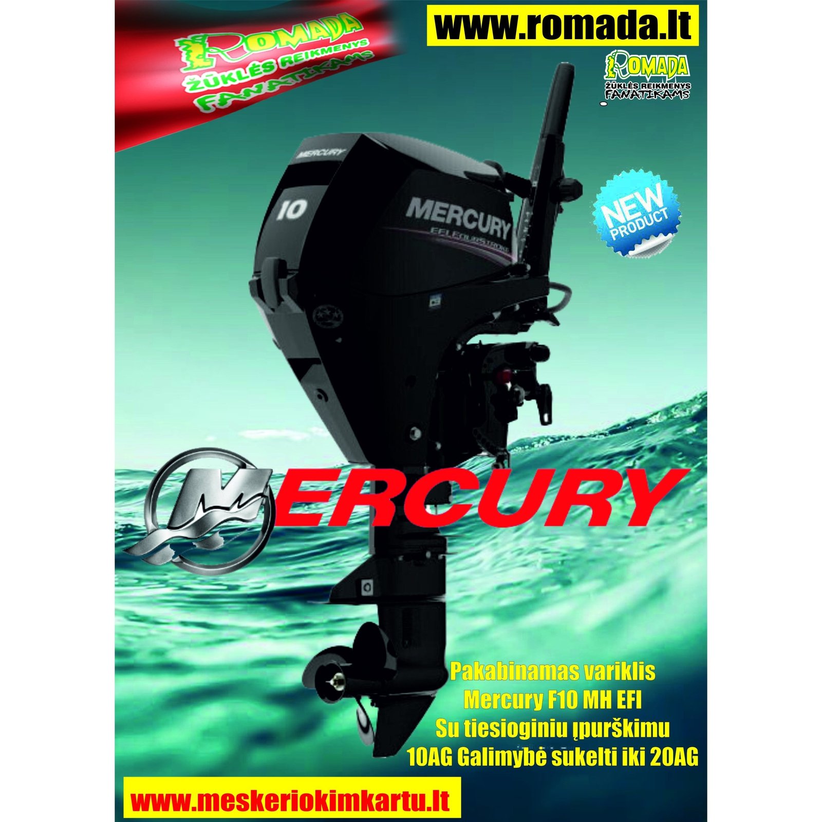 Naujas 2025 metų Mercury F10 MH savo galios klasėje yra naujausias ir pažangiausias, jie pradėti gaminti 2018m. Net 333 CC kubatūra ir tiesioginio įpurškimo sistema šį „Mercury“ variklį daro išskirtiniu tuo, kad jis gali būti perdaromas net į 20 AG (tokiu atveju garantija taikoma nebus).