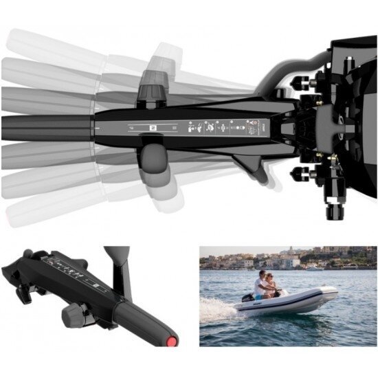 Variklio „Mercury“ F10 daugiafunkcinė rankena ne tik nepriklausoma nuo variklio, dėl ko nepersiduoda vibracija nei į ranką, nei į valties korpusą, bet ir yra sumontuota variklio centre. „Mercury“ F10 MH pakabinamą variklį patogiai galite valdyti sėdėdami variklio vienoje, ar kitoje pusėje;