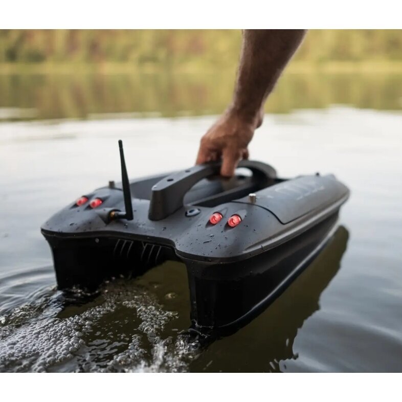 Deeper komanda sukūrė revoliucinę technologiją, kuri išreiškia naują požiūrį į dugno tyrinėjimą ir judėjimą vandeniu. Šis autopilotas gali be vargo sugeneruoti gylio žemėlapius ir keliauti tiksliai ten, kur reikia, – be nuolatinės priežiūros. GPS modulis, inercinė matavimo įranga ir kruopščiai pritaikytas Kalmano filtras – visa tai sudaro vieningą autopiloto sistemą, kuri veikia išskirtinai sklandžiai ir tiksliai. Nuodugnių bandymų metu nustatytas vidutinis nuokrypis submetro diapazone reiškia, kad Deeper Quest veikia tiksliau nei bet kuris panašus prietaisas. Pažangios ir tikslios CHIRP technologijos pagrindu veikianti skenavimo sistema neprilygstamai tiksliai ir aiškiai perteikia duomenis, pasižymi neįtikėtina skiriamąja geba ir veikia bet kokiame gylyje 3 impulsų dažniais. Net sekliuose vandenyse sonaro rodmenys išlieka tikslūs, tad žuvis galima pastebėti vos 40 cm atstumu nuo vandens paviršiaus. O dugninės žuvys aptinkamos iki 100 m gylyje. Dvi atskiros talpos jaukui ir sausoji sistemėlės talpa viduje – šis jaukinimo sprendimas suteikia daugiau tikslumo bei universalumo nei bet kada anksčiau. Tinka – Didelis PVA krepšys- 70mm x 140mm. Iki – 2kg – atitinka 7 dideles jaukinimo raketas. Unikali sistemėlės talpa sukurta taip, kad PVA tinklelis nesušlaptų ir išlaikytų vientisumą plukdymo metu. Taip pat į šią talpą galima įpilti skystų kvapų ir norimoje vietoje suformuoti žuvis viliojantį debesį. 7 valandas veikianti baterija. USB-C įkrovikliu įkraunamų baterijų komplektas išlieka patvarus ir patikimai veikia net sudėtingiausiomis sąlygomis. Išsekusias baterijas galima lengvai pakeisti įkrautomis, kurios įstatomos į vietą be jokių laidų. Apsaugota bešepečių variklių sistema. Kruopščiai sureguliuota dviejų variklių sistema neskleidžia elektrinio triukšmo, todėl išlaikoma aukšta sonaro rodmenų kokybė ir tikslus batimetrinis atvaizdavimas. Vandens įleidimo ir vandensraigčio išleidimo angos yra apsaugotos nuo žolių, kad laivelis plauktų kiek įmanoma efektyviau ir tyliau. Tai naujas varomosios sistemos standartas. Efektyvi apsauga nuo drėgmės poveikio. Ši sistema naudoja drėgmės jutiklį ir tikslų drėgmės sulaikymo-pašalinimo mechanizmą, kuris leidžia aktyviai reguliuoti drėgmės lygį laivelio viduje ir užtikrinti sausą aplinką, kad įranga veiktų optimaliai. Maskavimo režimas. Leidžia paversti laivelį tikru nakties fantomu išjungiant šviesas ir apribojant greitį – kad jis plauktų nematomas ir negirdimas. Žvejams patogus, nesudėtingas valdymas. Nuotolinis valdiklis veikia visiškai paprastai. Galima naudoti viena ranka ir tuo pačiu metu atlikti kitus svarbius veiksmus. Magnetinė plokštė leidžia greitai atjungti nuotolinį valdiklį nuo telefono laikiklio. O dėl specialios konstrukcijos nuo stovo lengva nuimti tiek nuotolinį valdiklį, tiek telefoną. Sumani saugaus grįžimo funkcija užtikrina, kad maitinimo laivelis neįstrigtų viduryje ežero. Kai laivelio arba valdiklio baterijos įkrovos lygis nukrenta žemiau 5 % arba susilpnėja ryšys, įsijungia autopilotas ir grąžina laivelį į starto vietą ar saugų diapazoną. Deeper Quest pasižymi pažangia Co-Pilot funkcija. Kaip ji veikia? Trumpai tariant, Quest turi inerciją matuojančius jutiklius, kurie atskirai kontroliuoja kiekvieno variklio galią ir reguliuoja jo apsisukimus per minutę tam, kad jaukinimo laivelis plauktų tolygiai ir saugiai net ir per didžiausias bangas.