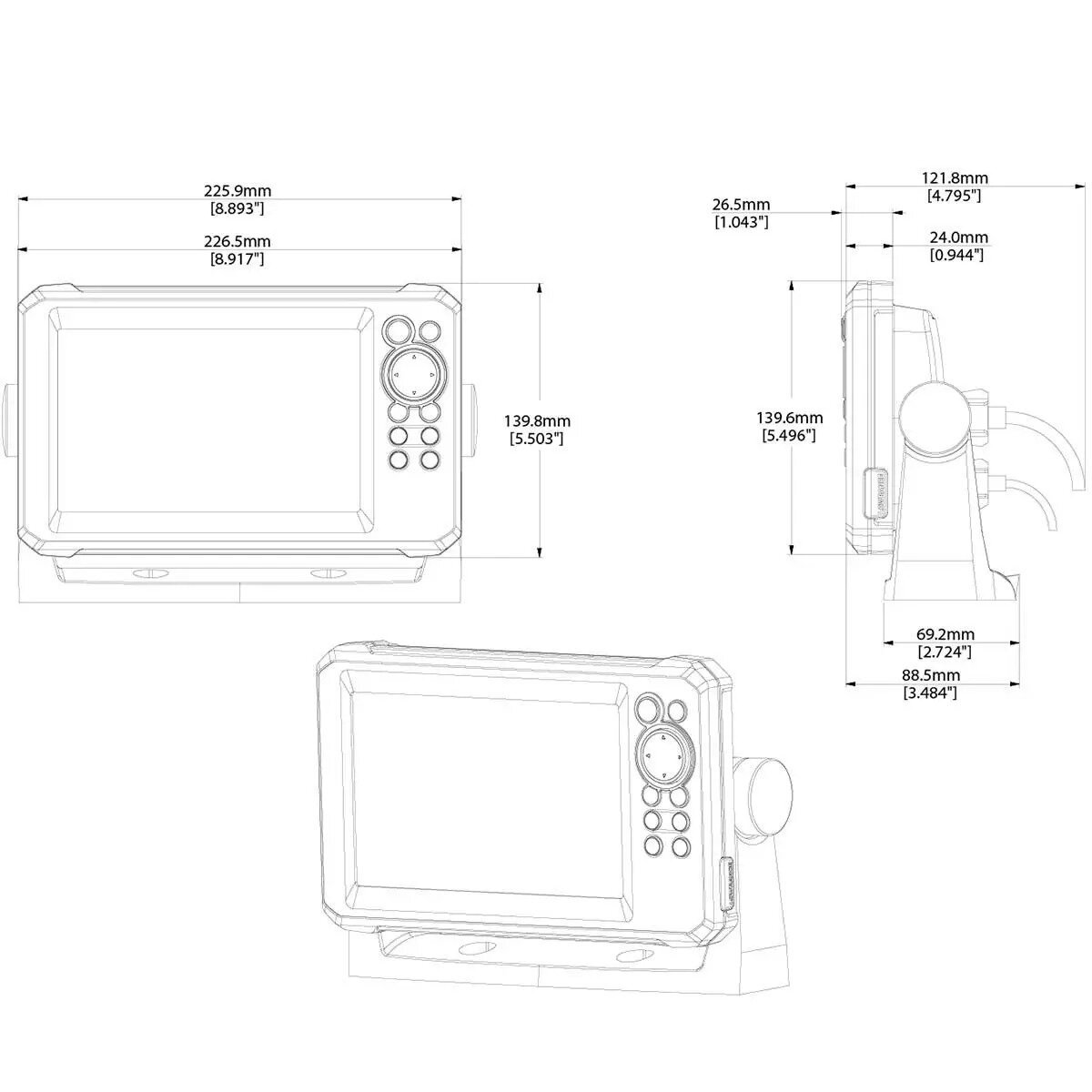 Matmenys (P x A x G) 225,9 mm (8,89 colio) x 139,8 mm (5,5 colio) x 88,5 (3,48)