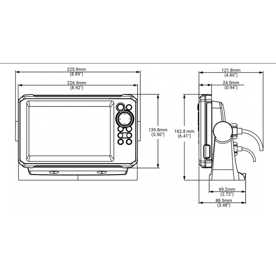 Matmenys (P x A x G) 225,9 mm (8,89 colio) x 139,8 mm (5,5 colio) x 88,5 (3,48)