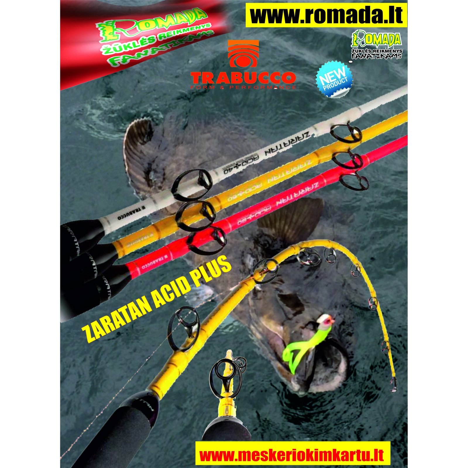 Mitologinė Zaratan Pabaisa Pagal senovės mitologiją Zaratan buvo jūrų pabaisa. Šiandien tai fantastiška meškerių serija, skirta velkiavimui ir dreifavimui gaudant iš valties Norvegijoje arba šiltuose vandenynuose , gaudyti skirtas Halibutus Otus, Dideles menkes, Tūnus, Ryklius ir kitas stambias žuvis. Spiningo ZARATAN ACID PLUS patraukli išvaizda, pagrįsta agresyviomis spalvomis ir detalėmis „tonas ant tono“, Zaratan sukurtas naudojant aukštąsias technologijas ir užbaigtas be jokių kompromisų komponentų itin stiprus ir patikimas kotas. Spiningas yra pagaminti iš vieno tvirto E-glaso gabalo (vientisas-Pilnaviduris) , kad būtų užtikrintas bendras atsparumas visoms didelėms žuvims ir nelūžtu, užtikrinant ekstremalius lenkimus atlaiko žiaurias apkrovas kovos metu. Meškerės judėjimas pumpuojant žuvį į paviršių nepaves traukiant ( Big Fish ) žuvis . Žvejojant stambius tunus su pintais valais žiedai nenulakstys ir išlaikys baisulines apkrovas. Žiedai priklauso „Sea Guide Heavy Duty“ serijai, su nerūdijančio plieno rėmu ir SiC žiedu, tvirtinama dviguba apvyniojimu pagal Acid Spiral Wrapping koncepciją. Ritės laikiklis pagamintas iš aliuminio ir turi dvigubą fiksavimo veržlę. EVA rankena siūlo mažo tankio priekinę rankeną, o užpakalis turi glotni apdailą ir baigiasi klasikiniu aliuminio kovos jungtis skirta įstatyti į jūrinį diržą su nuimamu guminiu dangteliu. Serija, skirta Tunų Halibutų Menkių Otų Ryklių žūklei • Tikra Pacific Bay sunkiojo aliuminio sraigtinė ritė laikiklis su dviguba fiksavimo veržle • „Slick Butt“ rankena su EVA priekine rankena, kad būtų saugu valdymas ir visiška kontrolė • aliuminio kovos jungtis skirta įstatyti į jūrinį diržą su nuimamu guminiu dangteliu.
