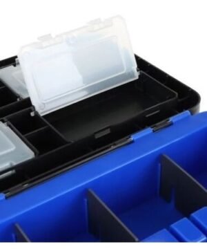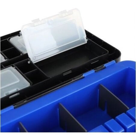 Dėka 19 litrų tūrio, dėžėje tilps daug naudingų žvejybos įrankių. Papildomas tarpiklis su 2 skyreliais ir nuimamomis pertvaromis leidžia pasidėti smulkias meškeres ir kitus įrankius. Pagrindinis skyrius skirtas nešti žvejybos įrankius, termosą, taip pat patogus laimikiui gabenti. Dangtelio vidinėje pusėje yra 4 skyriai su permatomais dangteliais smulkiems priedams susidėti.