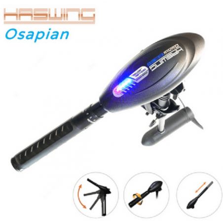 Haswing Osapian 30 lbs– klasikinės konstrukcijos elektriniai valčių varikliai, aukšta kokybė bei ergonomika. Visi modeliai aprūpinti teleskopine reguliuojamo aukščio ir kampo vairalazde (rumpeliu), reguliuojamas kojos aukštis, sumontuotas pastoviai veikiantis baterijos įkrovos LED indikatorius, tai padės kontroliuoti plaukimo atstumą, laiką, racionaliai naudoti akumuliatoriaus energiją, tuo pačiu prailginant jo tarnavimo laiką. Šis variklis turi 2-viejų menčių sraigtą.