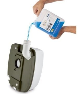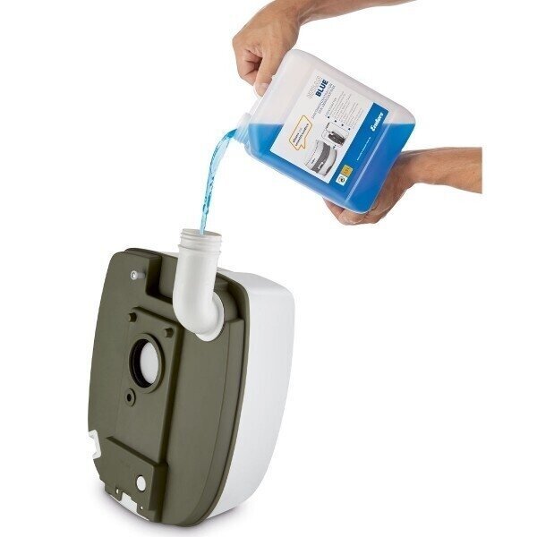 Į unitazo kriauklę įpilti maždaug 100 g biotualetui skirti dezinfekcinio skysčio;