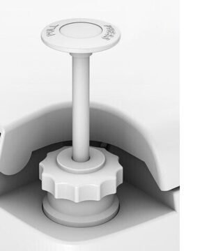 Lengvai atidaroma į norimą pusę pasukama anga, skirta dezinfekuojančiam skysčiui įpilti;