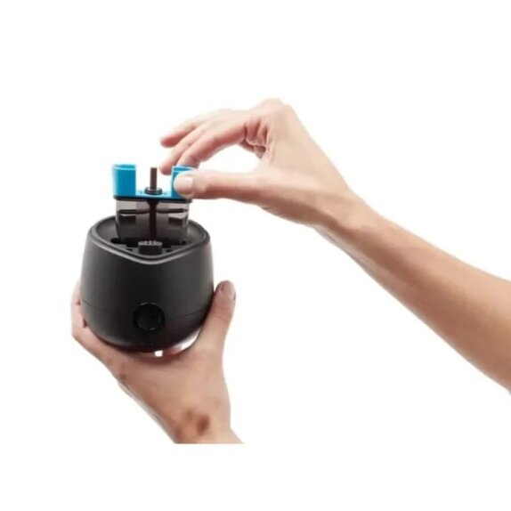 Pakuotės sudėtis: E55 prietaisas, 1 papildymas (12 valandų) ir 1 USB įkrovimo laidas.