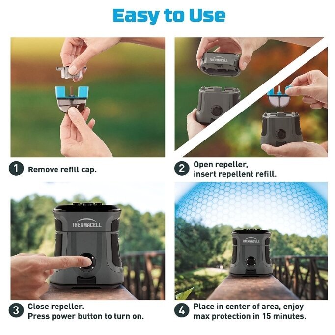 Thermacell EX90 – labai efektyvus, iki 98% uodus, museles ir kitus kraujasiurbius mašalus atbaidantis prietaisas. Visiškai naujas „Thermacell“ EX90 uodų repelento įrenginys veikia ilgiau, jo atbaidymo mechanizmas yra optimizuotas ir valdomas vienu mygtuku. EX90 lengva naudoti, bekvapis ir kompaktiškas. Maitinamas ličio-jonų baterija, o ne „Thermacell“ dujų balionėliais.