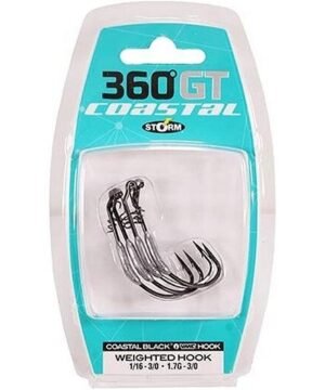 Storm 360GT Coastal Weighted Swimbait Hooks yra skirti naudoti su įvairiais guminukais tiek gėluose, tiek sekliuose pakrančių vandenyse. Šiuose tvirtuose VMC Coastal Black kabliukuose kablio koto centre yra subalansuotas kilio svoris ir spyruokle, kad palengvintį montažą ir pailgėtų jūsų guminuko tarnavimo laikas. Supakuota po 4 vnt. 3/0 – 4,5cm, 4/0 – 5cm, 5/0 – 5,5cm.