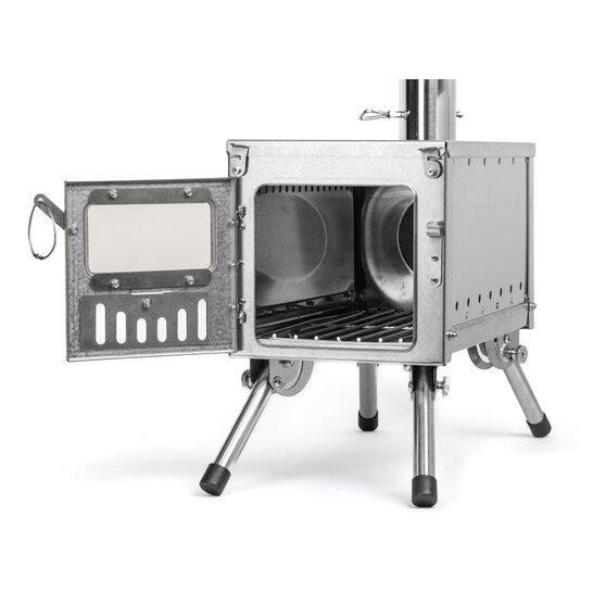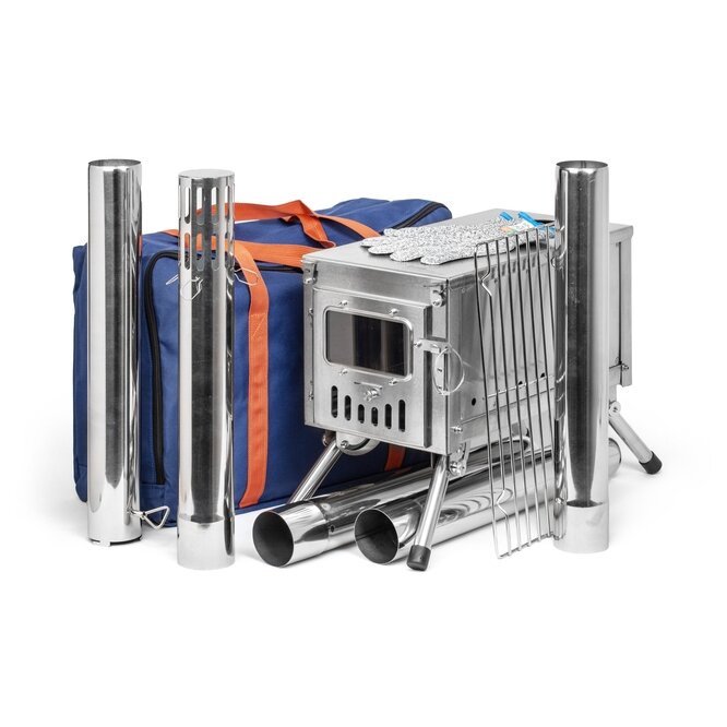 Palapinės krosnelė pagaminta iš nerūdijančio plieno, o jos konstrukcija sukurta specialiai palapinėms, nameliams ir kaimo namams šildyti. Komplektuojamas su patogiu krepšiu, kad būtų lengva transportuoti.