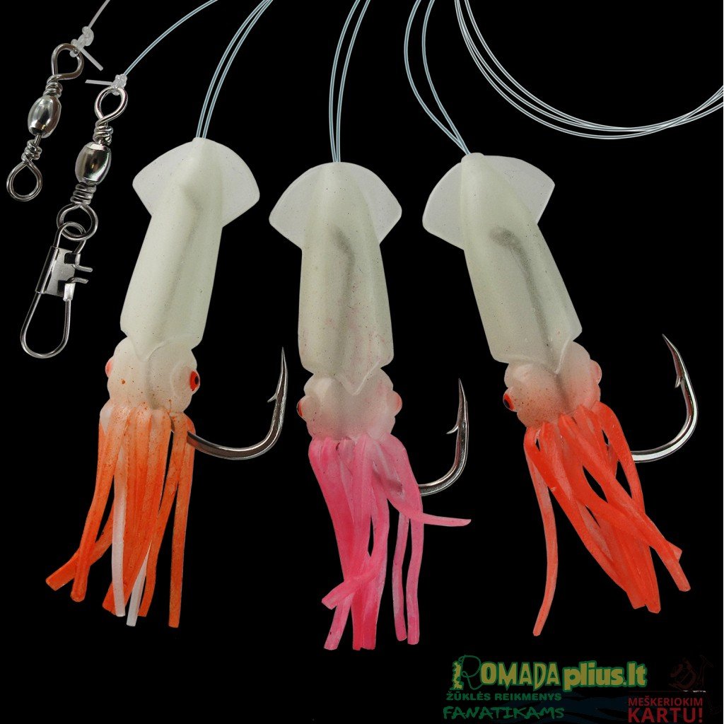 Paternoster Menkės 5/0, 3 luminous kalmarai, 0.60mm, 145cm