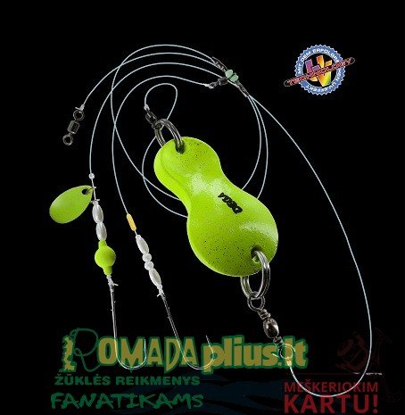UV-active Flatfish-Spoon Snelled on an attractive leader Attract-Spoon for flatfish and sea fishing (UV-active flatfish spoon). The spoon is already professional tied with mono-line (shapr hooks, diferent beads and spinner-blades). The different color variants as well as the light beads increase the attrac to the fish. Available in three different weight-versions. Weight classes as well as two-time color variants. Cord thickness: main cord 0,50 mm, side arms 0,40 mm 1 pc / header-packed on a practical EVA board