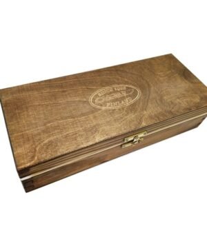 Kiekvienas peilis pristatomas elegantiškoje medinėje dovanų dėžutėje.