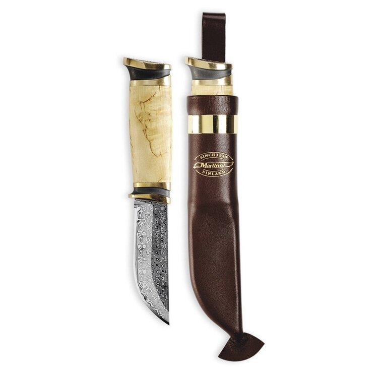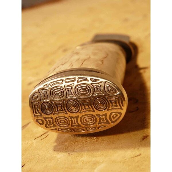 Peilio rankena pagaminta iš suomiško garbanotojo beržo, o antgaliai – iš lietos bronzos. Gražus geležtės raštas kartojamas ant antgalio rankenos gale.