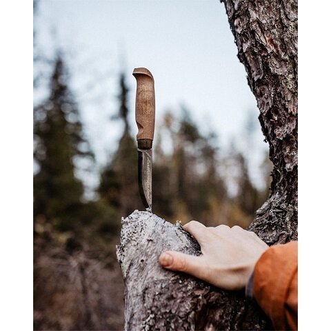 Patogus bendros paskirties peilis, ši versija yra pagaminta iš lengvai prižiūrimo nerūdijančio plieno. Rankena pagaminta iš beicuoto beržo. Jo paviršius yra šiek tiek tekstūruotas, todėl galite lengvai tvirtai ir saugiai suimti peilį. Tradicinio stiliaus odinis dėklas. Ašmenų ilgis 10 cm. Bendras ilgis 22 cm. Made in Finland.