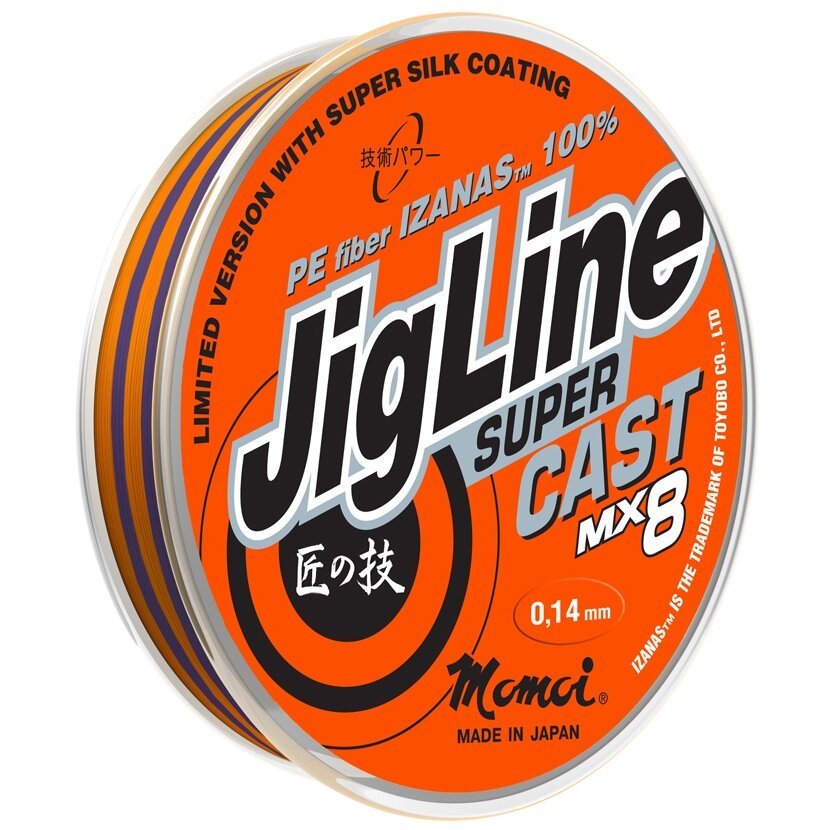 Naujausios kartos Momoi žvejybos valai. Naujoji serija išleidžiama ribotu kiekiu ir neturi analogų. JigLine Super Cast – specialiai sukurta rekordiškai tolimiems metimams. Turi itin tvirtą, neprilygstamą atsparumą dilimui kartu su garsiąja "šilko" Super Silk danga ir visiškai apvaliu skerspjūviu. Tvirtas aštuonių MX8 gijų pynimas.