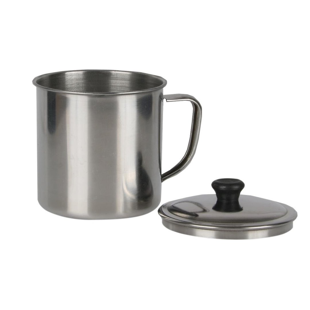Puodelis nerūdijančio plieno su dangteliu. Puikiai tinka žygiams ir iškyloms. Kompaktiškas puodelis, lengvai valomas. Talpa: 1 litras. Diametras: 13cm.