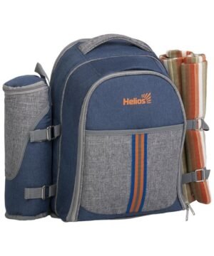 Iškylų komplektas 4 asmenims leis jums patogiai atsipalaiduoti su draugais ar šeima gamtoje. Patogus ir kompaktiškas, jis neužima daug vietos, o jame yra viskas, ko reikia. Kuprinė su dideliu izoterminiu maisto ir gėrimų skyriumi, taip pat skyrius, kuriame yra patys daiktai. Abu skyrius galima lengvai uždaryti užtrauktuku.