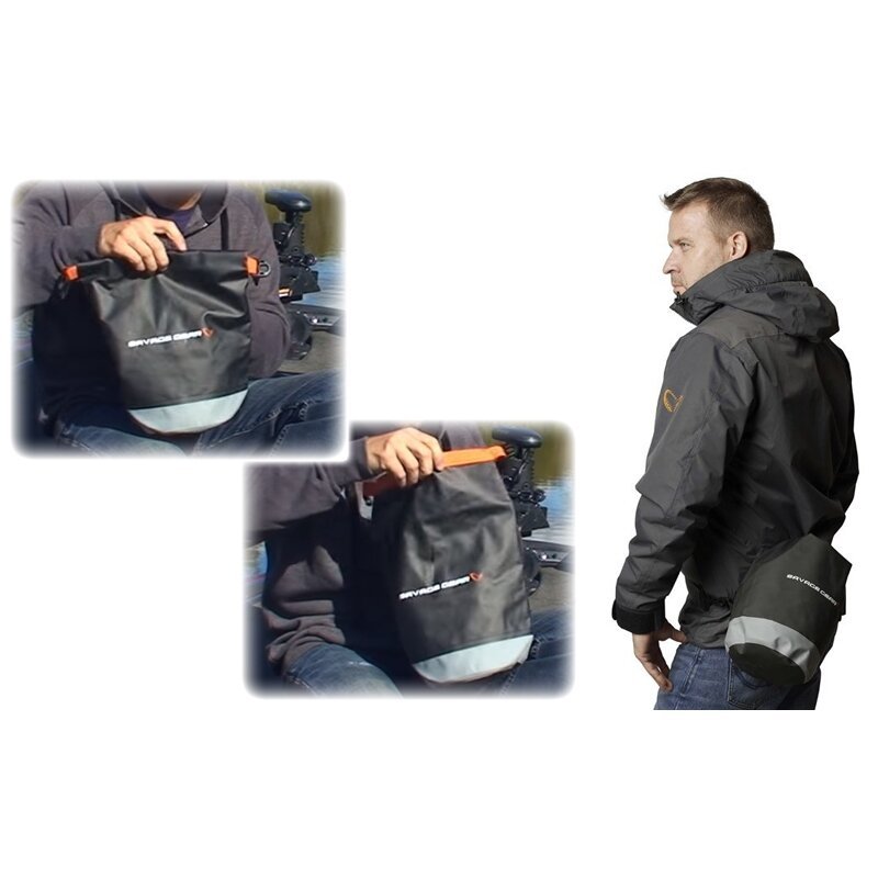 Idealus mažas vandeniui atsparus krepšys meškeriotojams. Turite 5 litrus tūrio, užtenka būtiniausiems daiktams, ypač jei esate lengvo spiningo mėgėjas ir valandomis vaikštote pakrantėmis, kurių metu svarbu, kad jūsų daiktai ir aksesuarai būtų sausi. Tvirtas PVC 500D TARPULIN brezentas užtikrina, kad drėgmė neprasiskverbtų. O praktiškas dizainas – kad turite greitą prieigą ir galimybę reguliuoti dydį pagal naudojamą tūrį, o galutiniam užsegimui tereikia spustelėti sagtį.