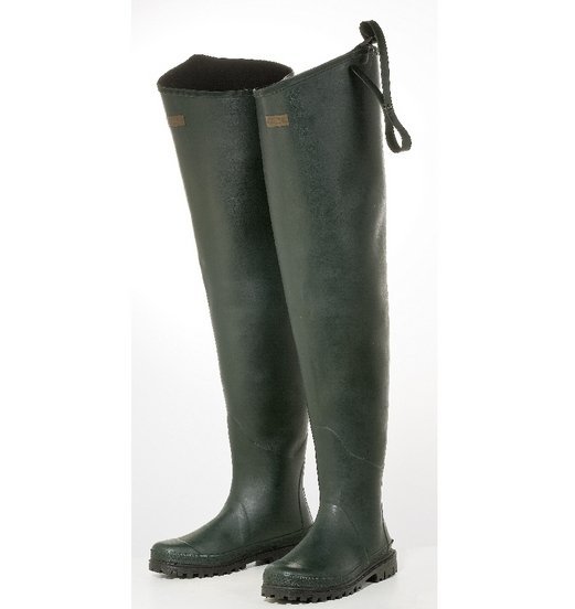 Hip-waders Comfortable fitting hip-waders in natural rubber. An internal insulation of fine 1,5 mm high quality neoprene. Outer material: Natural rubber. Hand made waders. Insulation made of polyester-jersey (fast drying and non-deteriorating). Comfortable foot bed, good fitting, non-slipping. Shock absorbing sole. Includes straps for connecting to belt. Attractive design. Good quality workmanship.
