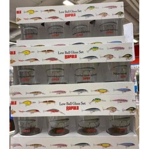 Rapala Puodelių Rinkinys Dovana Stiklinai 4 vienetai Supakuoti į Gražią Dėžutę Papuošta Vobleriais Rapala
