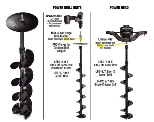 „Lazer™“ gręžimo agregatas yra plieninis Šnekas, randamas „Lithium 40v“ ir kituose 8 arba 10 colių „StrikeMaster“ grąžtuose. Žr. „Lite-Flite Lazer“ gręžimo agregatą, kuriame rasite sintetinę, lengvesnę šio grąžto Šnekas versiją. Gręžimo agregatą sudaro: aukščiausios kokybės peilis(-iai), peilio