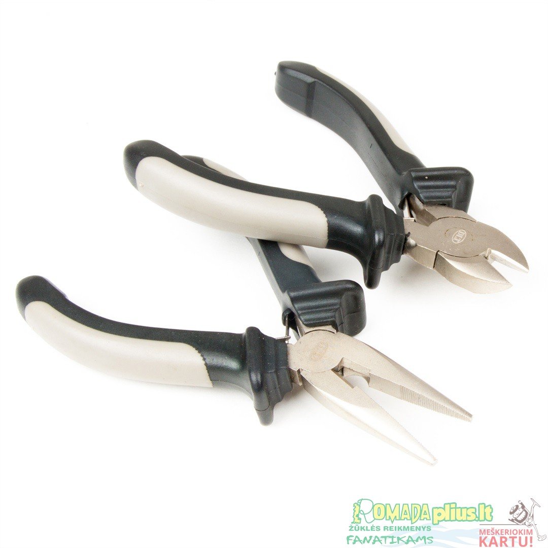Dviejų replių setas. Stiprios žnyplės plieninės vielos pjaustymui ir kt. įskaitant patogų laikymo maišelį.